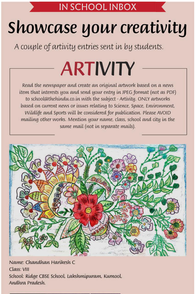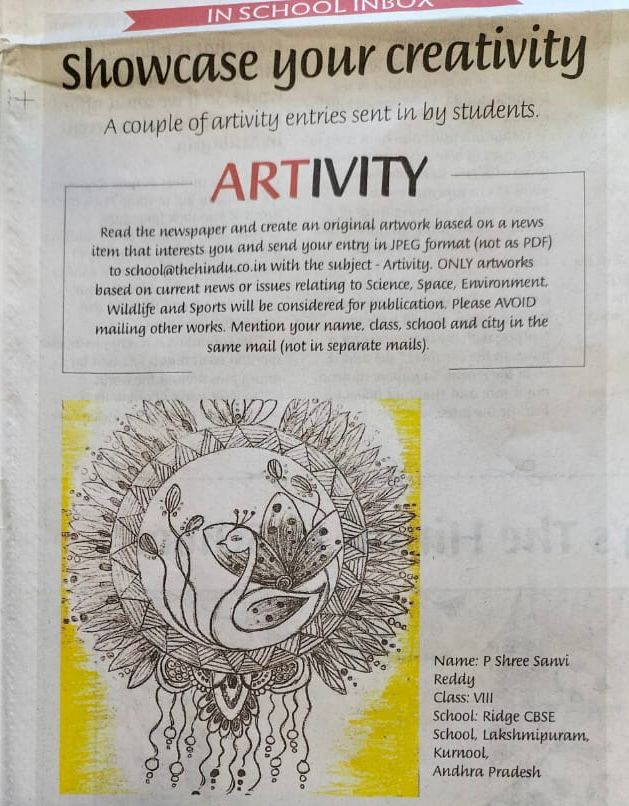 The exceptional artistic flair of C. Chandan Harikesh was published on 16th September 2025 in the Artivity Corner of THE HINDU newspaper. This esteemed recognition is a testament to the student’s creativity, vision, and unwavering commitment to artistic excellence.