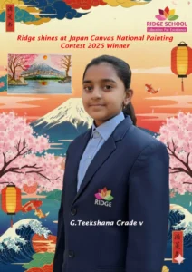 Ridge School is beyond thrilled to announce that G. Teekshana of Class V has made us the school by winning the Extraordinary Performance Award at the 11th National Painting Competition—Japan on Canvas 2025, hosted by Experience Japan!