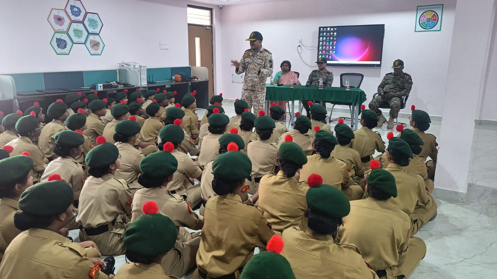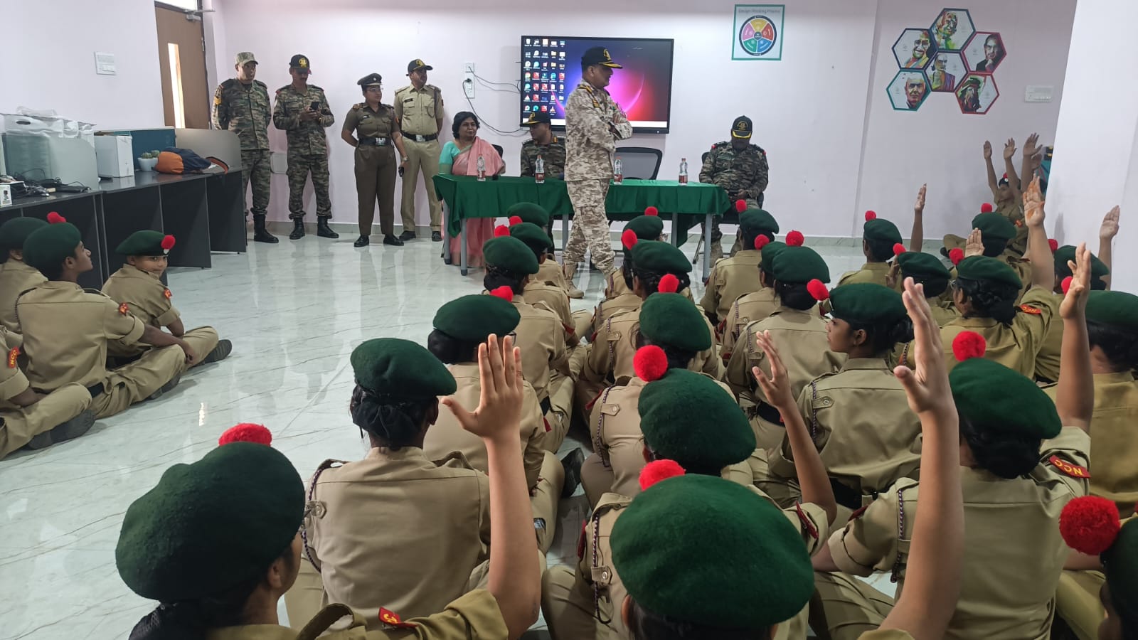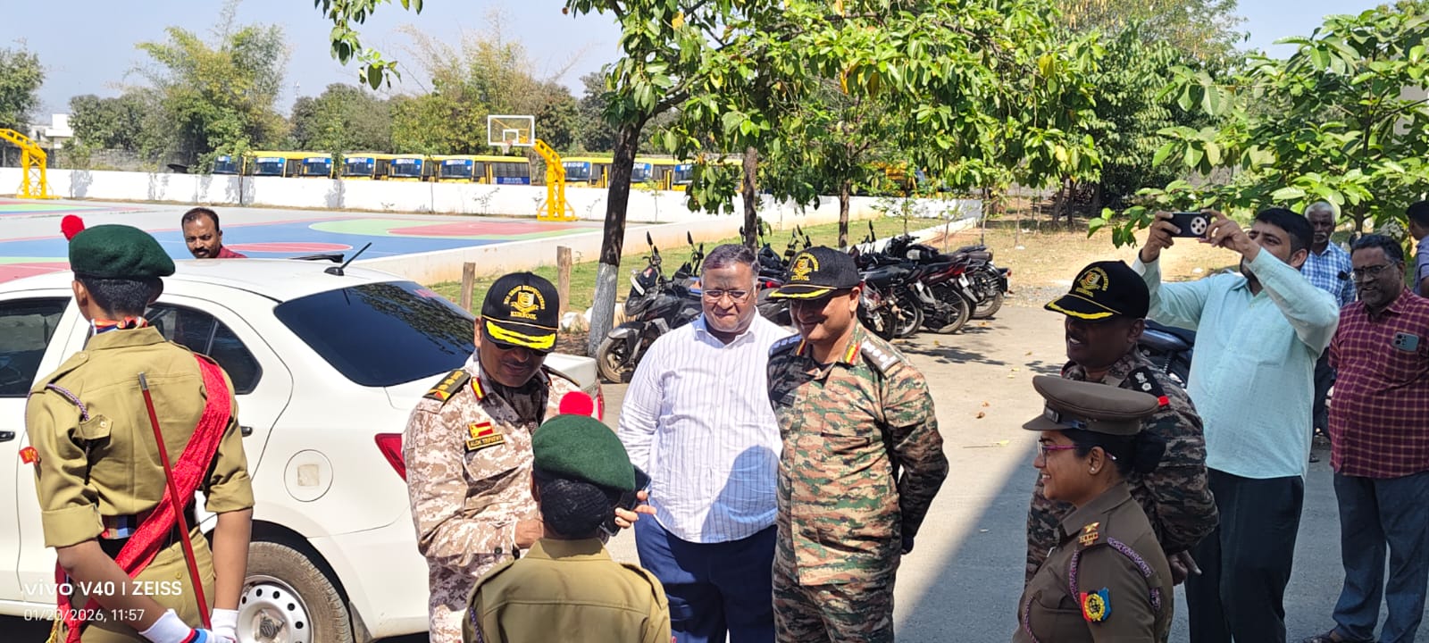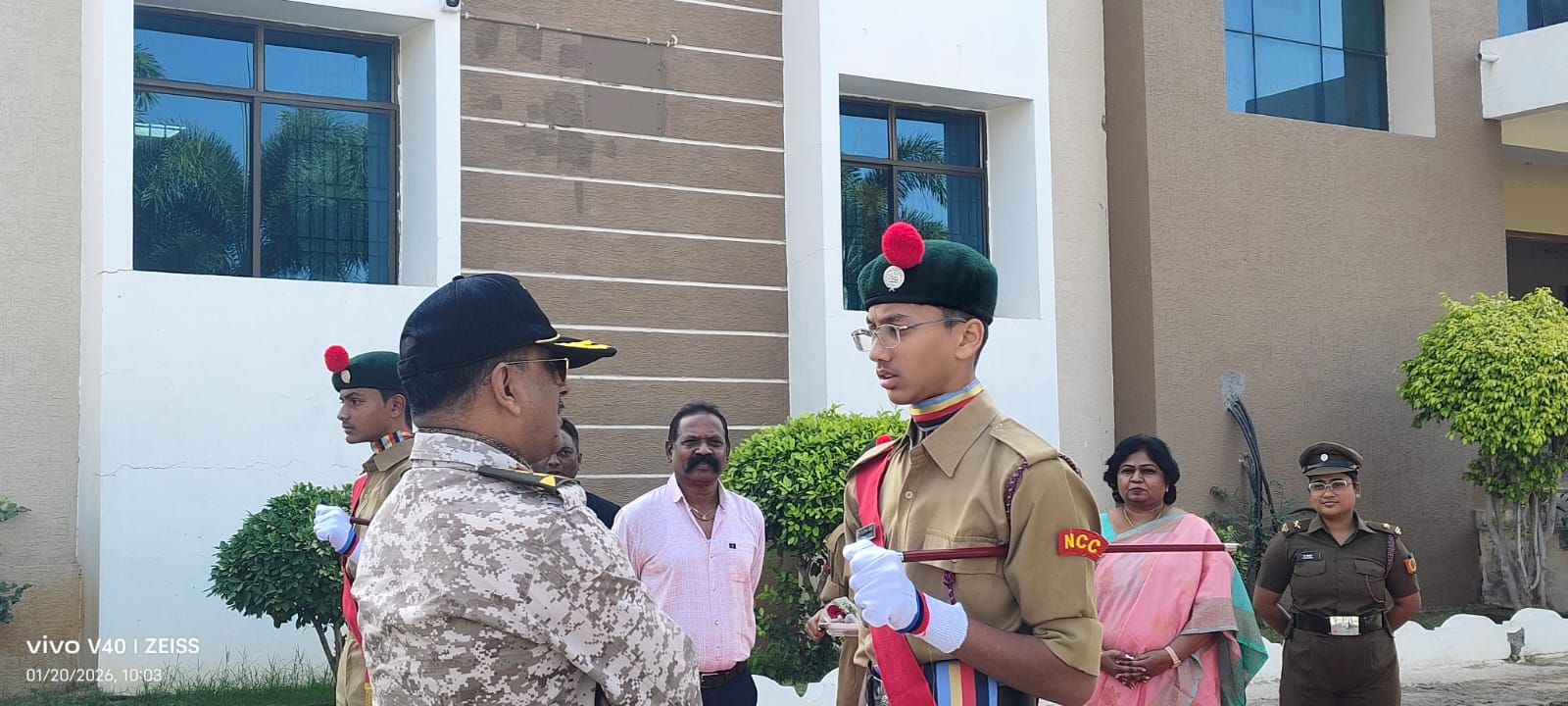 Accompanied by Col. Jobee Philip (Officer Commanding, 9 Andhra Girls Battalion) and Lt. Col. Sasi Kumar (Officer Commanding, 28 Andhra Battalion), they conducted a meticulous review of our NCC facilities and toured the vibrant campus.Engaging with Principal and Management, the officers evaluated our robust NCC training programs. Their interaction with First & Second Year cadets—discussing NCC ‘A’ Certificate prep and performance—was truly motivational, especially Col. Tripathi’s rousing address igniting young spirits!A profoundly productive visit that galvanized our cadets toward excellence.