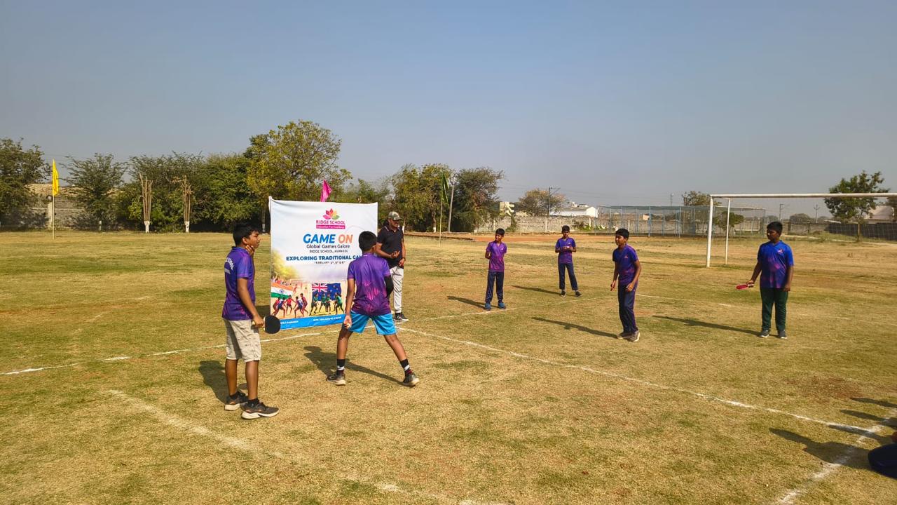 At Ridge School, Kurnool, innovation meets tradition as our students proudly present Ridge Raid Rally (RRR) — a unique sporting creation. As part of the Global Games Fusion initiative, Grade 8 students researched and blended three traditional games — Kabaddi, Ki-o-Rahi, and Matkot — into one dynamic hybrid game.
